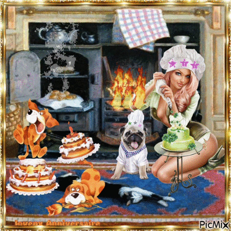 C'est l'anniversaire des chiens de la maison, et à cette occasion un chef pâtissier auréolé de trois étoiles au guide "Canin" a été convié afin de réaliser les gâteaux d'anniversaire de ses congénères;